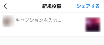 キャプションの入力が求められ「シェアする」をタップすることで、投稿が完了します。