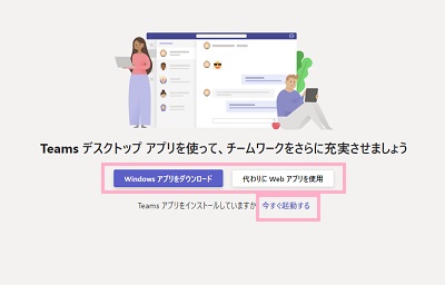 インストールが完了したら、「今すぐ起動する」をクリックすればTeamsアプリが起動します。もしアプリを使用せずブラウザからTeamsを開きたいという場合は、「代わりにWebアプリを使用」ボタンをクリックしましょう。