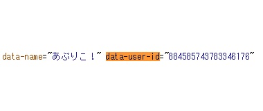 画像のように、data-user-id=の後に続いて""で囲まれている箇所がそのユーザーのユーザーIDとなります。