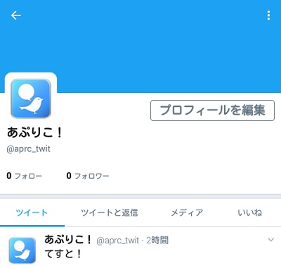 アプリ版でもスクリーンネームが「@aprc_twit」から「@aprc_aftername」へと変わりました。これでスクリーンネームの変更は成功です。