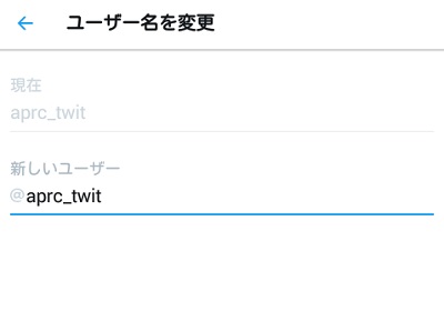 画像のように、スクリーンネームが「@aprc_twit」から「@aprc_aftername」へと変わりましたね。 これでスクリーンネームの変更は成功です。
