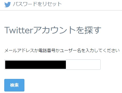 登録したメールアドレスか電話番号かユーザー名を聞かれるので、どれかを入力して検索ボタンをクリックします。