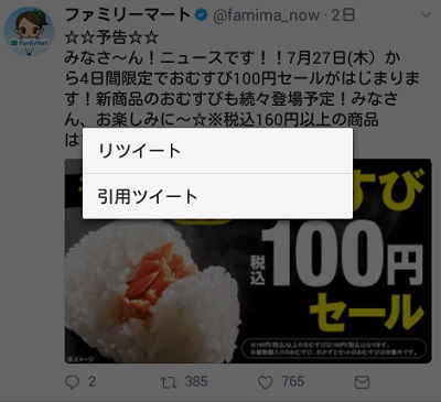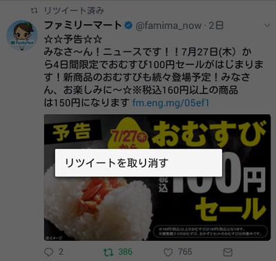 リツイートする時とは違って確認アナウンスがないので注意しましょう。