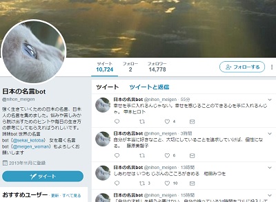 など、多種多様です。 多数あるbotの中から例を一つ取り上げてみます。