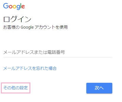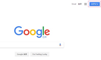 アカウントを作るために、Googleのサイトへ行きましょう。トップページ右上の「ログイン」をクリックします。