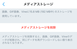 メディアストレージでは一度表示した「画像」「GIF画像」「Vineの動画」などが保存されています。これを削除することで容量を節約することができます。