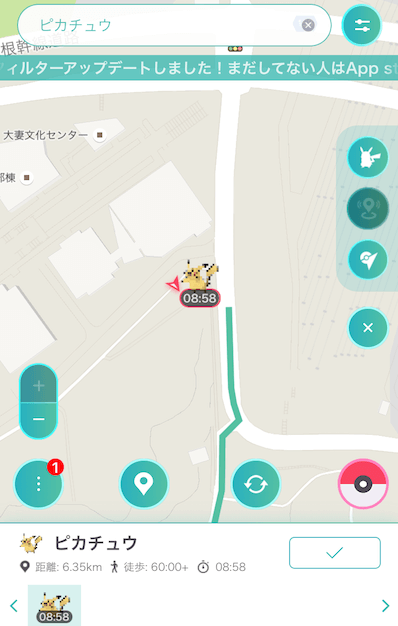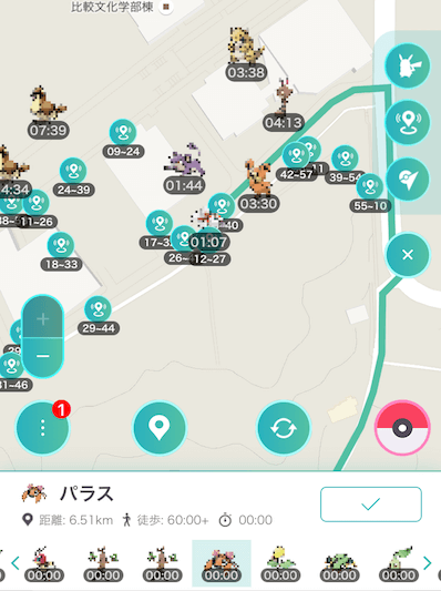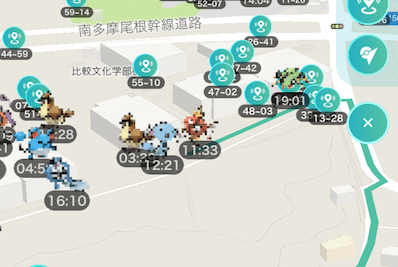 表示されているポケモンの下にはタイマーがあり、ポケモンが消滅するまでの時間が表示されています。タイマーが0になると表示されているポケモンが消えます。 表示されているポケモンにタップすると、現在地からそのポケモンまでの道のりをナビゲートしてくれます。