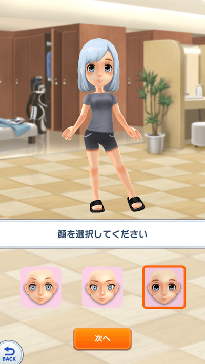 次に顔を選択します。あまり違いがないですが、目元や眉毛が少し違いますね。 今回は一番右の顔をチョイス!