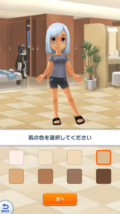 次に肌の色を選択します!8色から自由に選択できます。すこし日焼けしたような健康色を選んでみます。
