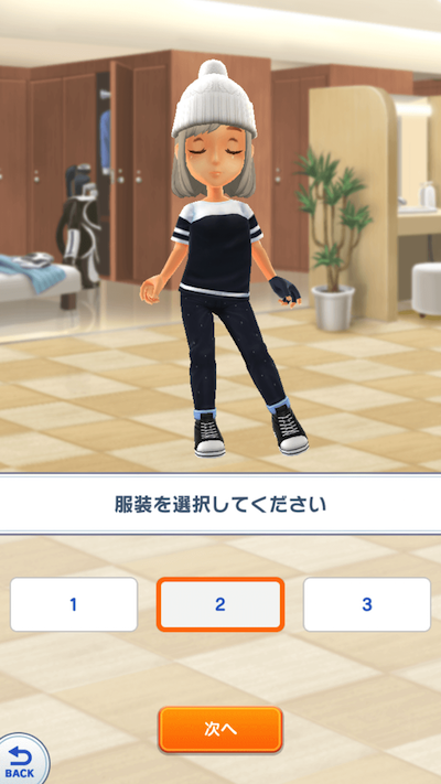 次に服装を決めます。3種類から選ぶことができます。ボーイッシュなものを今回はチョイス!スポーツ感が少し薄れても気にしてはいけません。