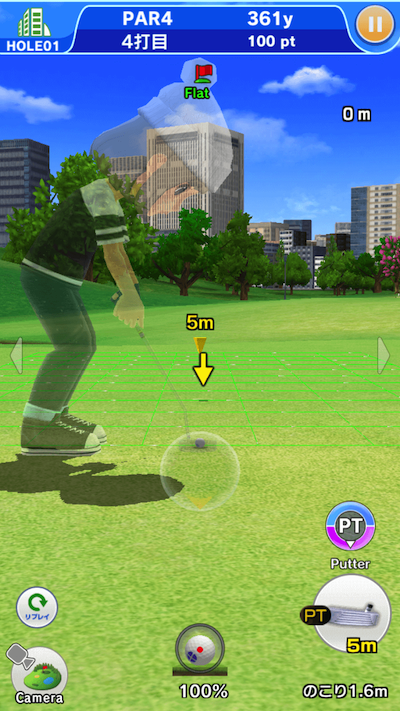 カップに少ない打数で入れればより良い点数を取ることができます。