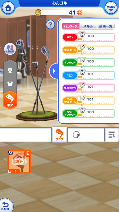 ギア画面では、クラブやボールを変えることができます。 クラブやボールの種類によってパラメータやスキルが違うので育成に行き詰まった場合はここで変えましょう。 色も変更できるので、個性をアピールしたいときにはここから変更しましょう。