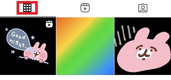 自分のプロフィールが開いたらプロフィールグリッドのアイコンをタップします。
