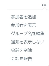 グループチャットの右上にはメニューボタンが表示されており、ここからグループチャットへ他のユーザーを追加する・グループチャットの参加者一覧を表示する・グループチャットに名前を付けるなどが可能です。