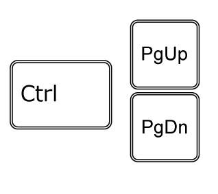 ノートパソコンの場合は、「PgUpキー」・「PgDnキー」が別のキーと同一になっていることがほとんどなので「Fnキー」を併用する必要があります。ノートパソコンでタブを移動するショートカットキーは、「Fnキー+Ctrlキー+PgUpキー」の同時押しでタブを左方向へと移動・「Fnキー+Ctrlキー+PgDnキー」の同時押しでタブを右方向へと移動することができます。