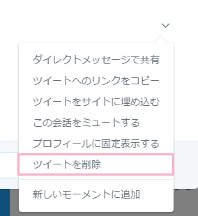 ツイートを削除するときは、削除したいツイートの右上にある矢印のアイコンをクリックしましょう。