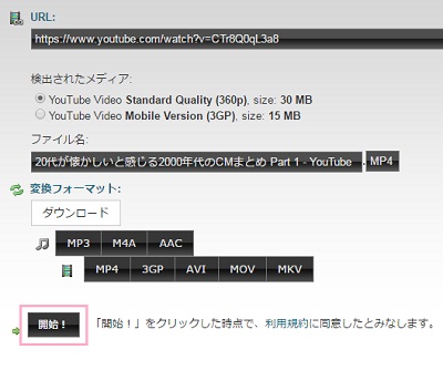 変換フォーマットでは、動画をどの形式でダウンロードするかを選択することができます。