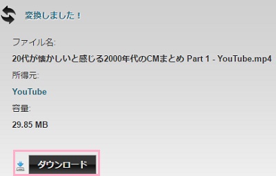 変換が終了するとダウンロードボタンが表示されますので、クリックすれば保存することができます。
