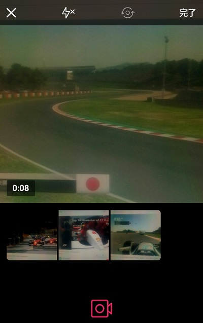 画像がTwitterアプリで撮影中の動画ですが、撮影ボタンを押している間だけ撮影が行われ、離すとシーンが作られるようになっています。