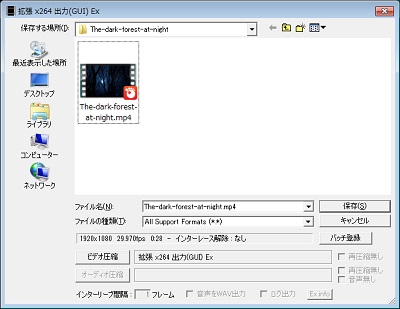 エンコードしたファイルを保存する場所を選び、ファイル名を付けて保存ボタンをクリックすればMP4形式でエンコードが開始されます。