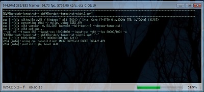 エンコード時は画像のようなウィンドウが開き、右下にプログレスバーが表示され進行度を教えてくれます。
