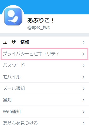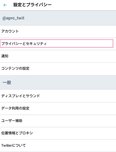 アカウントの「プライバシーとセキュリティ」をタップします。