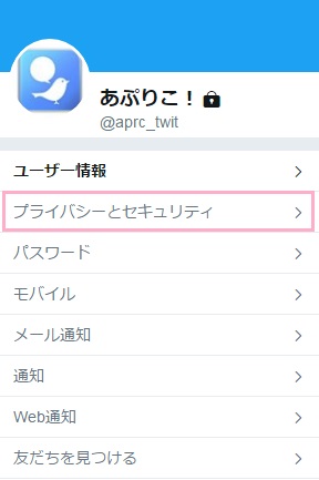 プロフィールの横に非公開状態を示す錠前のアイコンが付きましたね。 これでAndroidスマホアプリ版での非公開設定が完了しました。