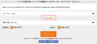 音質にこだわりたい人は、フォーマット選択後に下に表示される「その他の設定」をクリックします。