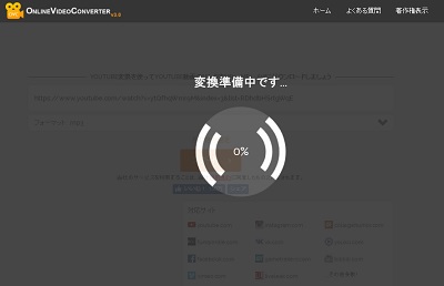 ダウンロードする場合は入力フォームにYoutubeの動画のURLを入力して「化す(翻訳がおかしいですが、これがダウンロードという事らしいです)」と書かれたボタンをクリックすると変換が始まります。