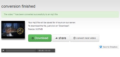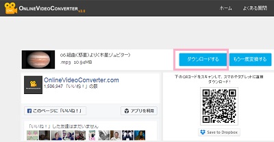 すぐに動画がmp3へと変換され、画像のようにダウンロードリンクが表示されます。左下のダウンロードボタンをクリックすれば、mp3化された音声ファイルがダウンロードできます。