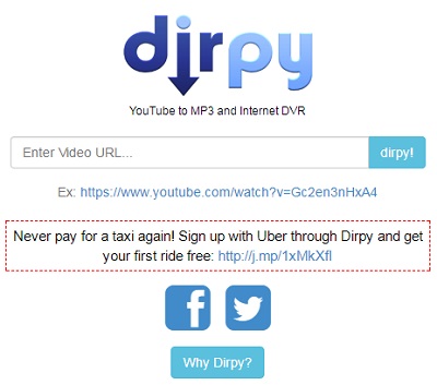 使い方ですが、入力フォームにダウンロードしたいYoutubeの動画のURLを入力し、「dirpy!」と書かれたボタンをクリックします。