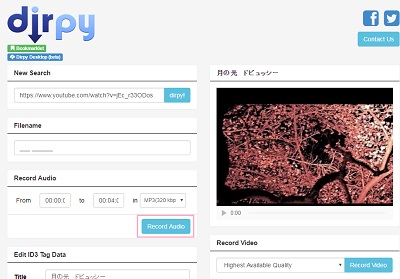 dirpyもシンプルな動画ダウンロードサイトです。対応しているのはYoutubeのみですが、他のサイトにはあまり見られない便利な機能を備えています。