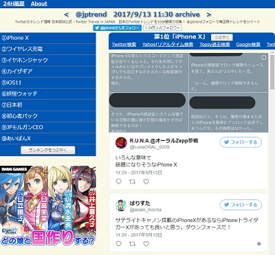 各トレンドワードはTwitterにリンクしているので、クリックすればすぐにつぶやきを検索することができます。