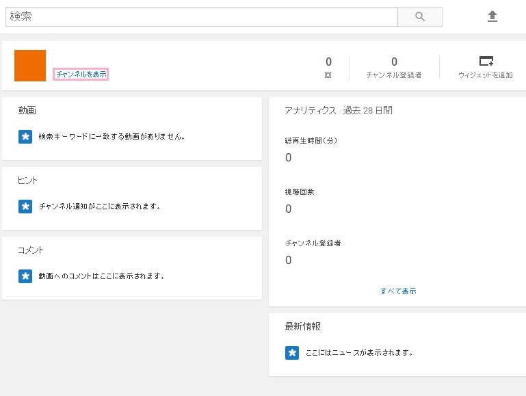 画面上部の自分のアイコン・名前の下に青文字で「チャンネルを表示」と書かれているリンクがあるのでクリックします。
