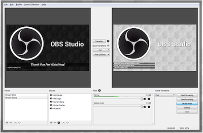 ここであらかじめダウンロードしたエンコーダのOBSを起動します。