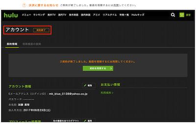 解約方法を説明する前に解約に関する注意を説明します。 必要だと思う方はご一読ください。 huluは基本的に1ヶ月ごとに料金が発生し、料金システムは、サービスを開始した瞬間から発生する先払い方式になります。 そして、huluは、退会した瞬間からサービスを利用できない状態に切り替わります。