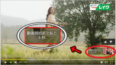 動画再生前に流れる広告。5秒後にスキップできる広告とスキップ不可の広告があります。