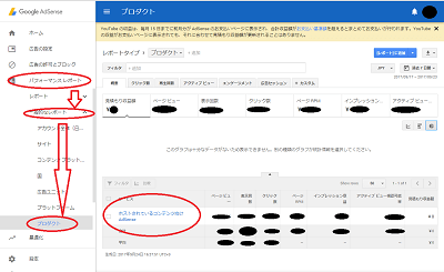 GoogleAdSenseを開き、左サイドバーにある「パフォーマンスレポート」→「一般的なレポート」→「プロダクト」の順にクリックしていき、「ホストされているコンテンツ向けAdsense」をクリックします。