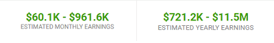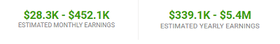 月予想収益 $28.3K~$452.1K(約316万円~約5061万円) 年予想収益 $339.1K~$5.4M(約3796万円~約6億450万円)